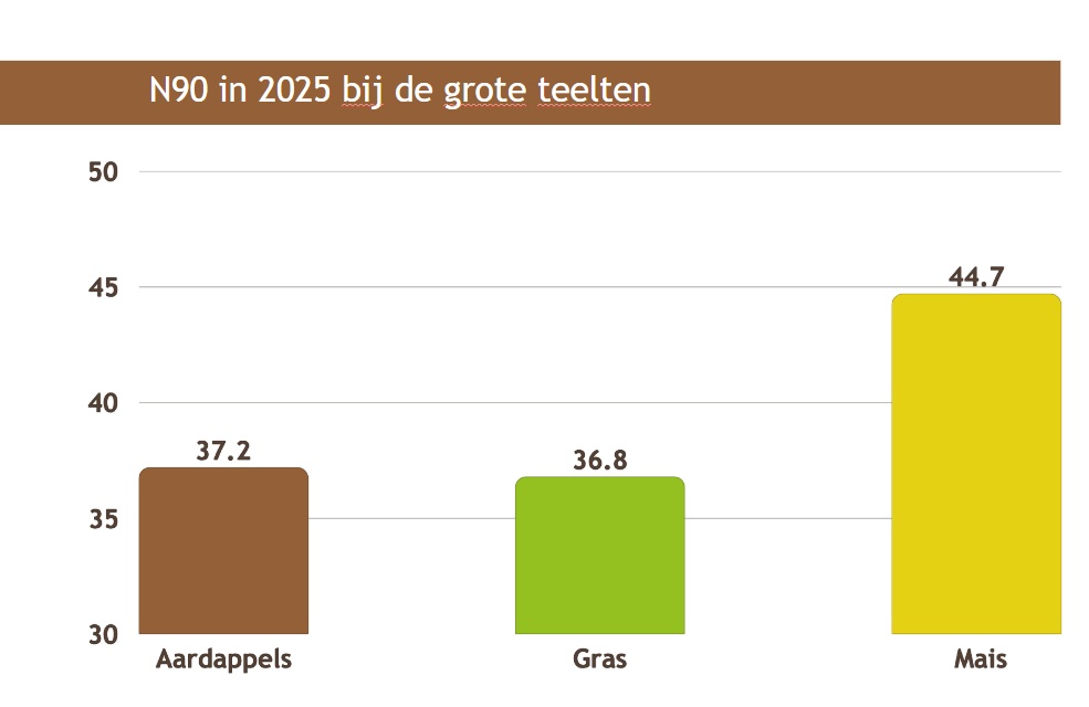 N90-cijfers gaan over de analyse van de stikstofhoeveelheid die achter gebleven is in de herfst, in de bovenste 90 cm van de bodem. Het is geen nitraatmeting, maar een indicator voor mogelijke nitraatuitspoeling. Het resultaat is afhankelijk van de grondwatertrap, de teelt en de grondslag. De data die hiermee verzameld sluit goed aan bij de inzet op doelsturing.
